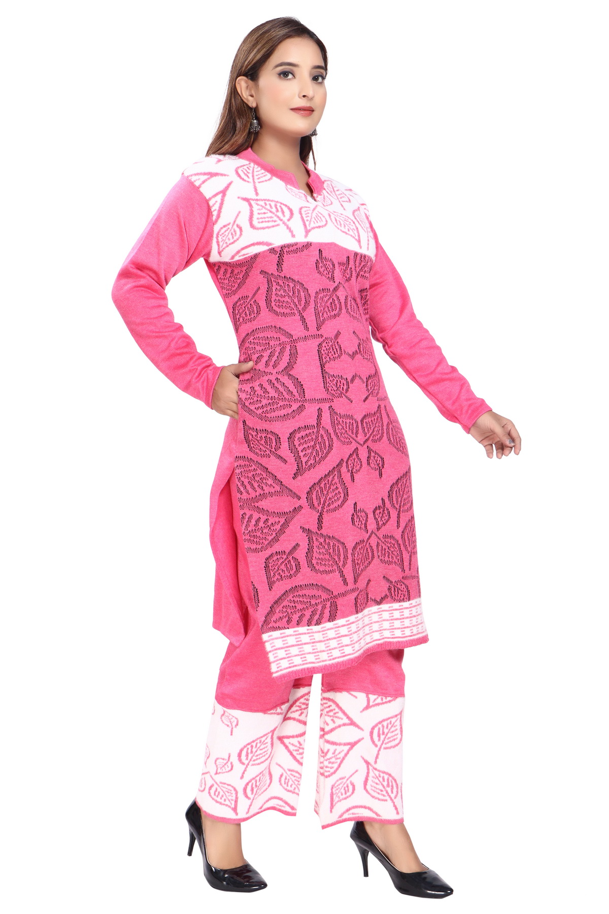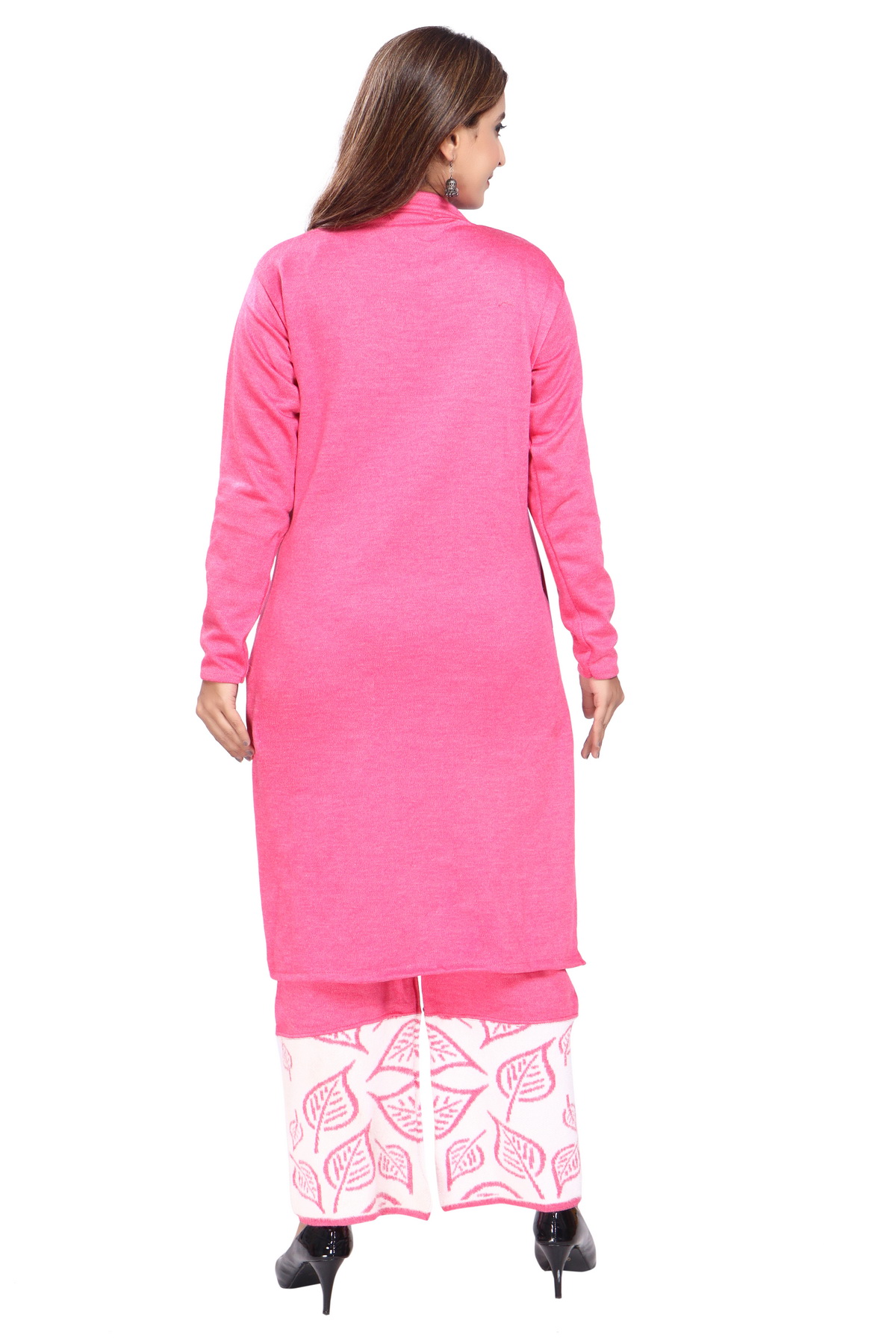 Elevate your winter wardrobe with this beautifully designed winter co-ord set, featuring a warm and stylish kurti paired with matching palazzo pants. Crafted with premium wool-blend fabric, this set is designed to provide optimal warmth while maintaining a lightweight and comfortable fit. The co-ord set seamlessly blends elegance and practicality, making it ideal for a variety of occasions, from casual outings to formal gatherings.