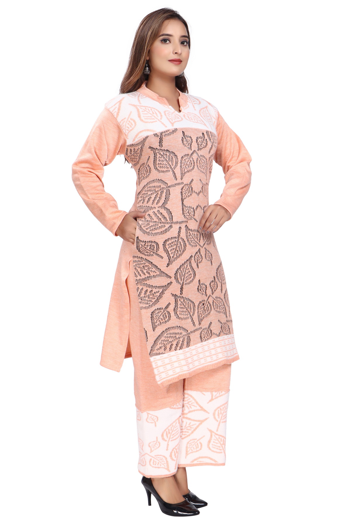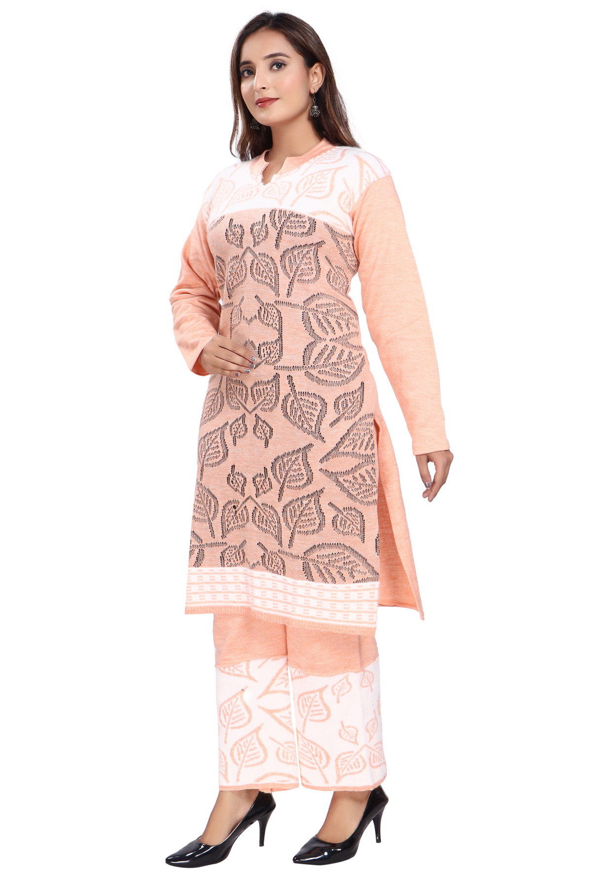 Elevate your winter wardrobe with this beautifully designed winter co-ord set, featuring a warm and stylish kurti paired with matching palazzo pants. Crafted with premium wool-blend fabric, this set is designed to provide optimal warmth while maintaining a lightweight and comfortable fit. The co-ord set seamlessly blends elegance and practicality, making it ideal for a variety of occasions, from casual outings to formal gatherings.