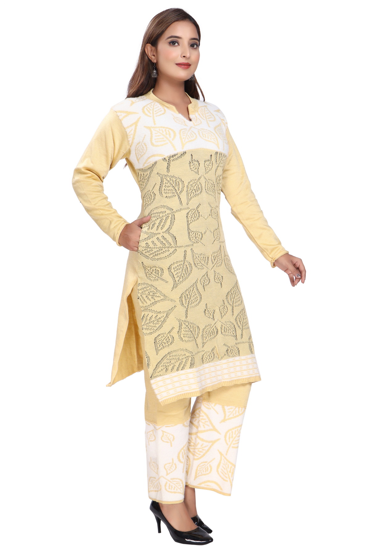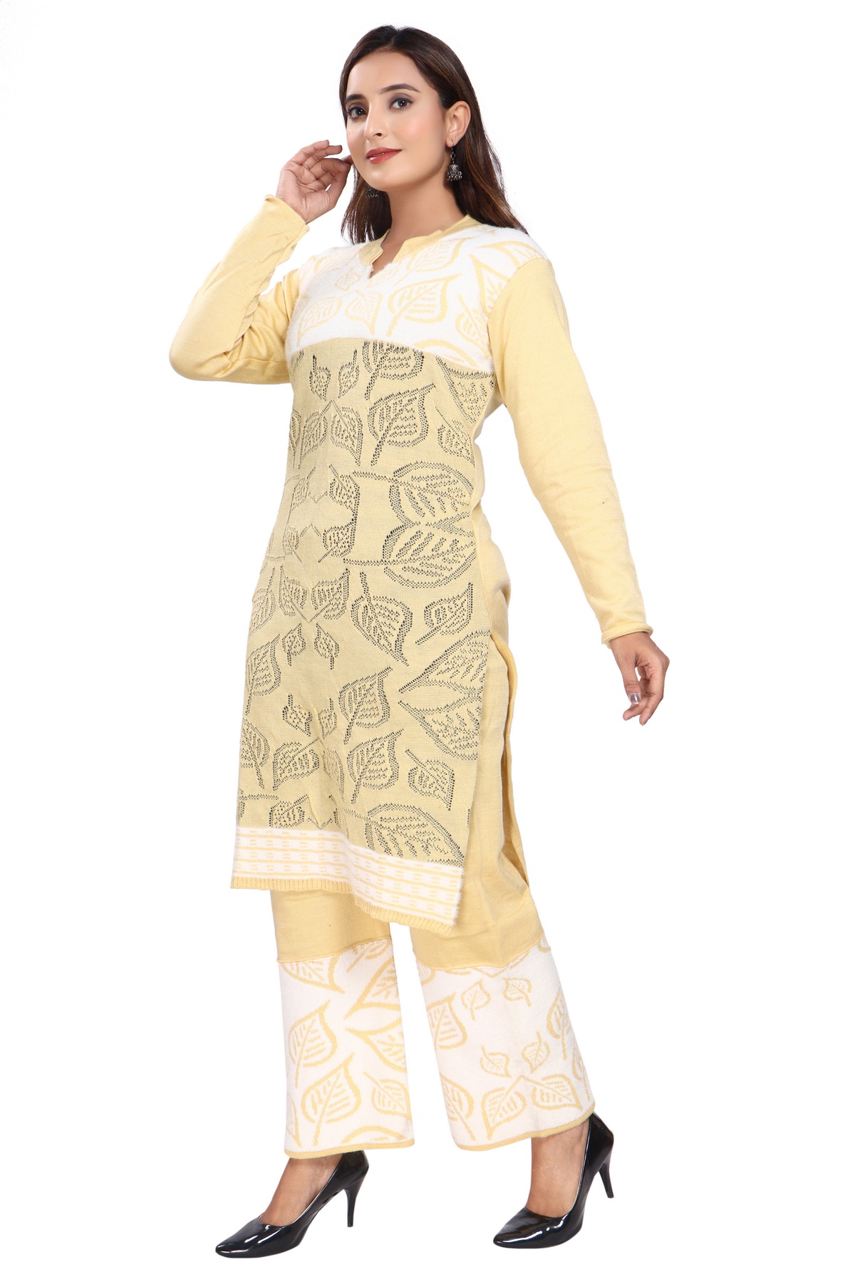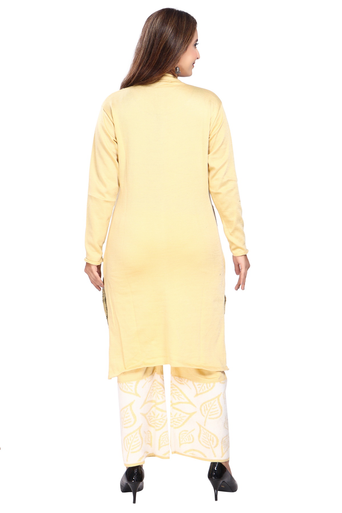 Elevate your winter wardrobe with this beautifully designed winter co-ord set, featuring a warm and stylish kurti paired with matching palazzo pants. Crafted with premium wool-blend fabric, this set is designed to provide optimal warmth while maintaining a lightweight and comfortable fit. The co-ord set seamlessly blends elegance and practicality, making it ideal for a variety of occasions, from casual outings to formal gatherings.